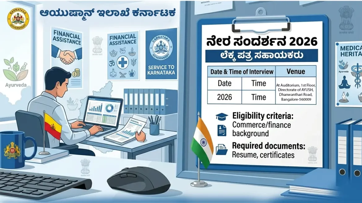 ಕರ್ನಾಟಕ ಸರ್ಕಾರದ ಆಯುಷ್ ಇಲಾಖೆಯು 2026ನೇ ಸಾಲಿನಲ್ಲಿ ರಾಷ್ಟ್ರೀಯ ಆಯುಷ್ ಅಭಿಯಾನದ ಅಡಿಯಲ್ಲಿ ಖಾಲಿ ಇರುವ ವಿವಿಧ ತಾಂತ್ರಿಕ ಮತ್ತು ಆಡಳಿತಾತ್ಮಕ ಹುದ್ದೆಗಳ ಭರ್ತಿಗಾಗಿ ಬೃಹತ್ ನೇಮಕಾತಿ ಪ್ರಕ್ರಿಯೆಯನ್ನು ಹಮ್ಮಿಕೊಂಡಿದ್ದು, ಈ ಕುರಿತು ಹೊರಡಿಸಿರುವ ಅಧಿಕೃತ ಅಧಿಸೂಚನೆಯು ಉದ್ಯೋಗಾಕಾಂಕ್ಷಿಗಳಲ್ಲಿ ಹೊಸ ಭರವಸೆಯನ್ನು ಮೂಡಿಸಿದೆ. ಈ ನೇಮಕಾತಿಯು ಮುಖ್ಯವಾಗಿ ಬೆಂಗಳೂರಿನಲ್ಲಿರುವ ಆಯುಷ್ ನಿರ್ದೇಶನಾಲಯದ ಕಚೇರಿಯಲ್ಲಿ ನೇರ ಸಂದರ್ಶನದ ಮೂಲಕ ನಡೆಯುತ್ತಿರುವುದು ವಿಶೇಷವಾಗಿದ್ದು, ಅರ್ಹ ಅಭ್ಯರ್ಥಿಗಳು ಯಾವುದೇ ಸುದೀರ್ಘ ಆನ್ಲೈನ್ ಅರ್ಜಿ ಪ್ರಕ್ರಿಯೆಯಿಲ್ಲದೆ ನೇರವಾಗಿ ತಮ್ಮ ಪ್ರತಿಭೆಯನ್ನು ಪ್ರದರ್ಶಿಸಲು ಇದೊಂದು ಸುವರ್ಣ ಅವಕಾಶವಾಗಿದೆ. ಆಯುಷ್ ಇಲಾಖೆಯು ಪ್ರಸ್ತುತ ಲೆಕ್ಕಪತ್ರ ಸಹಾಯಕರು ಸೇರಿದಂತೆ ವಿವಿಧ ಹುದ್ದೆಗಳಿಗೆ ಅರ್ಜಿಯನ್ನು ಆಹ್ವಾನಿಸಿದ್ದು, ಈ ಹುದ್ದೆಗಳು ಸಂಪೂರ್ಣವಾಗಿ ಗುತ್ತಿಗೆ ಆಧಾರಿತವಾಗಿರುತ್ತವೆ ಮತ್ತು ಸರ್ಕಾರದ ಮುಂದಿನ ಆದೇಶದವರೆಗೆ ಇವುಗಳ ಸೇವಾವಧಿಯು ಮುಂದುವರಿಯುವ ಸಾಧ್ಯತೆ ಇರುತ್ತದೆ. ಅಭ್ಯರ್ಥಿಗಳು ಈ ಹುದ್ದೆಗಳಿಗೆ ಆಯ್ಕೆಯಾಗಲು ಕೇವಲ ಶೈಕ್ಷಣಿಕ ಅರ್ಹತೆಯನ್ನು ಹೊಂದಿದ್ದರೆ ಸಾಲದು, ಬದಲಾಗಿ ಆಯಾ ಕ್ಷೇತ್ರಕ್ಕೆ ಸಂಬಂಧಿಸಿದ ಪ್ರಾಯೋಗಿಕ ಜ್ಞಾನ ಮತ್ತು ಕನಿಷ್ಠ ಎರಡು ವರ್ಷಗಳ ಕೆಲಸದ ಅನುಭವವನ್ನು ಹೊಂದಿರುವುದು ಅತ್ಯಂತ ಅವಶ್ಯಕವಾಗಿದೆ ಏಕೆಂದರೆ ಸಂದರ್ಶನದ ಸಮಯದಲ್ಲಿ ಅಭ್ಯರ್ಥಿಯ ಕಾರ್ಯಕ್ಷಮತೆ ಮತ್ತು ಅನುಭವವನ್ನು ಪ್ರಮುಖ ಮಾನದಂಡವಾಗಿ ಪರಿಗಣಿಸಲಾಗುತ್ತದೆ.