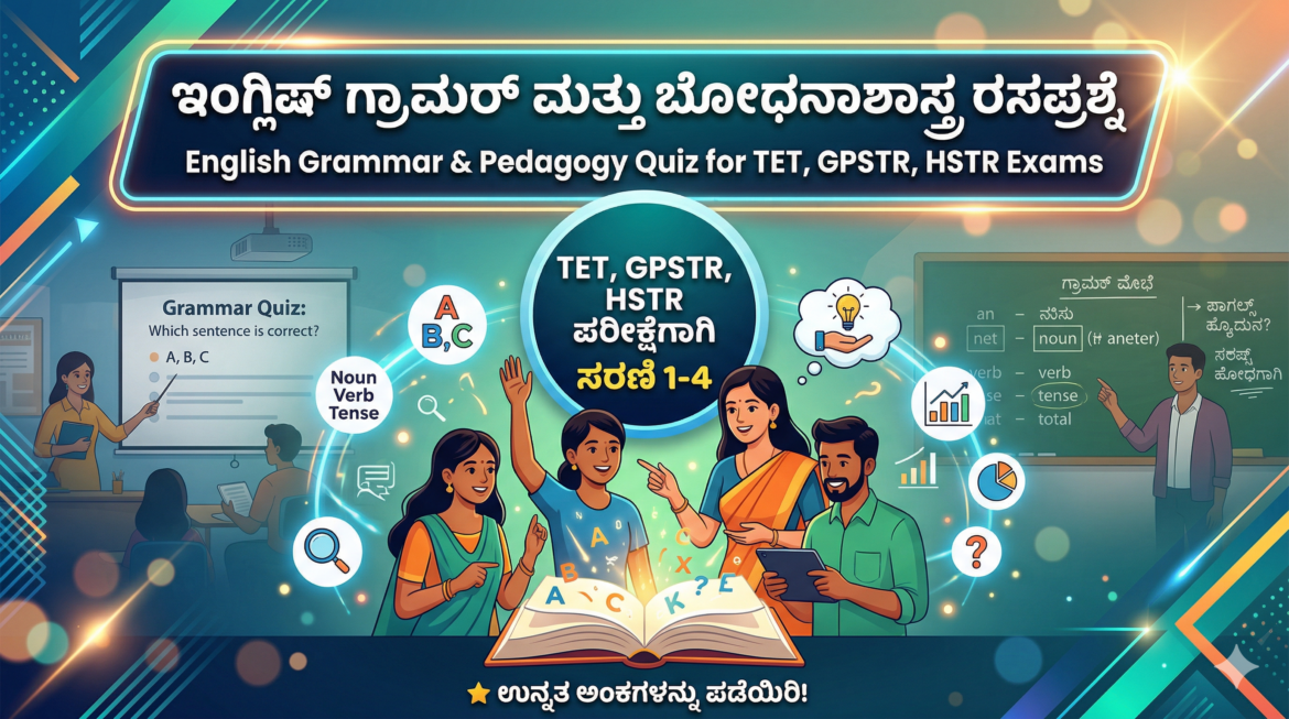 ಕರ್ನಾಟಕ ಶಿಕ್ಷಕರ ಅರ್ಹತಾ ಪರೀಕ್ಷೆ (KARTET), ಪ್ರಾಥಮಿಕ ಶಾಲಾ ಶಿಕ್ಷಕರ (GPSTR) ಮತ್ತು ಪ್ರೌಢಶಾಲಾ ಶಿಕ್ಷಕರ (HSTR) ನೇಮಕಾತಿ ಪರೀಕ್ಷೆಗಳಿಗೆ ಸಿದ್ಧತೆ ನಡೆಸುತ್ತಿರುವ ಎಲ್ಲಾ ಅಭ್ಯರ್ಥಿಗಳಿಗೆ ಸ್ವಾಗತ!