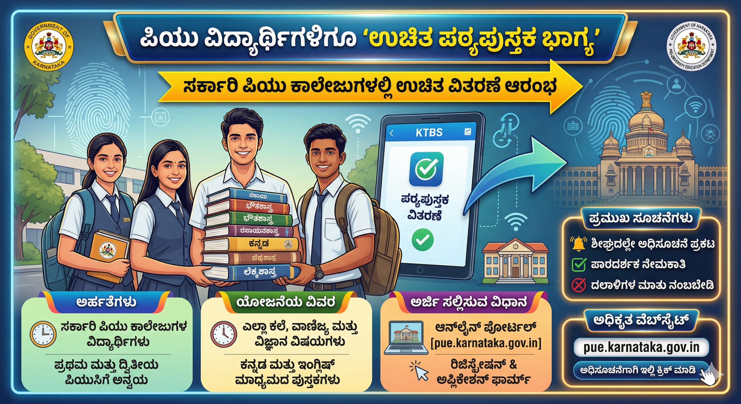 ಕರ್ನಾಟಕ ರಾಜ್ಯ ಸರ್ಕಾರದ ಶಿಕ್ಷಣ ಇಲಾಖೆಯು ರಾಜ್ಯದ ಶೈಕ್ಷಣಿಕ ಇತಿಹಾಸದಲ್ಲಿಯೇ ಅತ್ಯಂತ ಕ್ರಾಂತಿಕಾರಿ ಮತ್ತು ಜನಪರವಾದ ನಿರ್ಧಾರವೊಂದನ್ನು ಕೈಗೊಂಡಿದೆ. ಇದುವರೆಗೆ ಕೇವಲ ಒಂದನೇ ತರಗತಿಯಿಂದ ಹತ್ತನೇ ತರಗತಿಯವರೆಗಿನ ಸರ್ಕಾರಿ ಶಾಲಾ ವಿದ್ಯಾರ್ಥಿಗಳಿಗೆ ಸೀಮಿತವಾಗಿದ್ದ ‘ಉಚಿತ ಪಠ್ಯಪುಸ್ತಕ ವಿತರಣೆ’ ಯೋಜನೆಯನ್ನು ಈಗ ಪದವಿ ಪೂರ್ವ (PUC) ಹಂತದ ವಿದ್ಯಾರ್ಥಿಗಳಿಗೂ ವಿಸ್ತರಿಸಲು ಸರ್ಕಾರ ಅಧಿಕೃತವಾಗಿ ಅನುಮೋದನೆ ನೀಡಿದೆ. ಈ ಮಹತ್ವದ ಕ್ರಮವು ರಾಜ್ಯದ ಲಕ್ಷಾಂತರ ಬಡ ಮತ್ತು ಮಧ್ಯಮ ವರ್ಗದ ಕುಟುಂಬಗಳ ಆರ್ಥಿಕ ಹೊರೆಯನ್ನು ಕಡಿಮೆ ಮಾಡುವುದಲ್ಲದೆ, ಉನ್ನತ ಶಿಕ್ಷಣದತ್ತ ವಿದ್ಯಾರ್ಥಿಗಳನ್ನು ಪ್ರೋತ್ಸಾಹಿಸುವಲ್ಲಿ ದೊಡ್ಡ ಮೈಲಿಗಲ್ಲಾಗಲಿದೆ. ಪ್ರಸಕ್ತ ಸಾಲಿನಿಂದಲೇ ಜಾರಿಗೆ ಬರುವಂತೆ ಸರ್ಕಾರಿ ಪದವಿ ಪೂರ್ವ ಕಾಲೇಜುಗಳಲ್ಲಿ ವ್ಯಾಸಂಗ ಮಾಡುತ್ತಿರುವ ಕಲೆ, ವಾಣಿಜ್ಯ ಮತ್ತು ವಿಜ್ಞಾನ ವಿಭಾಗದ ಎಲ್ಲಾ ವಿದ್ಯಾರ್ಥಿಗಳಿಗೂ ಸರ್ಕಾರವು ಉಚಿತವಾಗಿ ಪಠ್ಯಪುಸ್ತಕಗಳನ್ನು ಒದಗಿಸಲಿದೆ. ಶಿಕ್ಷಣವು ಕೇವಲ ಶ್ರೀಮಂತರ ಪಾಲಾಗಬಾರದು, ಬದಲಿಗೆ ಸಮಾಜದ ಕಟ್ಟಕಡೆಯ ಮಗುವಿಗೂ ಗುಣಮಟ್ಟದ ಶಿಕ್ಷಣ ಮತ್ತು ಕಲಿಕಾ ಸಾಮಗ್ರಿಗಳು ಸುಲಭವಾಗಿ ಲಭ್ಯವಾಗಬೇಕು ಎಂಬ ಉದ್ದೇಶದಿಂದ ಈ ಯೋಜನೆಯನ್ನು ರೂಪಿಸಲಾಗಿದೆ.