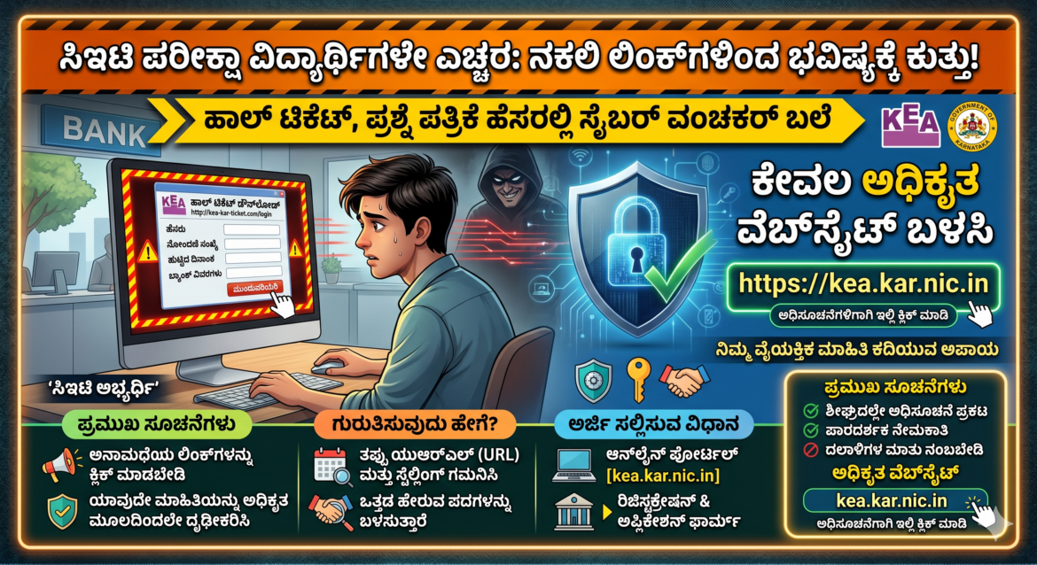 ಕರ್ನಾಟಕ ಸಾಮಾನ್ಯ ಪ್ರವೇಶ ಪರೀಕ್ಷೆ (CET) ಬರೆಯಲಿರುವ ವಿದ್ಯಾರ್ಥಿಗಳು ಮತ್ತು ಅವರ ಪೋಷಕರು ಪ್ರಸ್ತುತ ಅತ್ಯಂತ ಜಾಗರೂಕರಾಗಿರಬೇಕಾದ ಅವಶ್ಯಕತೆಯಿದೆ. ಪರೀಕ್ಷೆಯ ಸಮಯ ಹತ್ತಿರವಾಗುತ್ತಿದ್ದಂತೆ, ಸೈಬರ್ ಅಪರಾಧಿಗಳು ವಿದ್ಯಾರ್ಥಿಗಳ ಆತಂಕ ಮತ್ತು ಕುತೂಹಲವನ್ನೇ ಬಂಡವಾಳ ಮಾಡಿಕೊಂಡು ಹೊಸ ಬಗೆಯ ವಂಚನೆಯ ಜಾಲವನ್ನು ಹೆಣೆದಿದ್ದಾರೆ. ಇತ್ತೀಚಿನ ದಿನಗಳಲ್ಲಿ ಸಾಮಾಜಿಕ ಜಾಲತಾಣಗಳಲ್ಲಿ ಮತ್ತು ವಾಟ್ಸಾಪ್ ಗ್ರೂಪ್ಗಳಲ್ಲಿ “ಪರೀಕ್ಷಾ ಕೇಂದ್ರದ ಮಾಹಿತಿ”, “ಪ್ರವೇಶ ಪತ್ರ ಡೌನ್ಲೋಡ್”, ಮತ್ತು “ಪ್ರಶ್ನೆ ಪತ್ರಿಕೆಗಳ ಸೋರಿಕೆ” ಎಂಬ ಹೆಸರಿನಲ್ಲಿ ನಕಲಿ ಲಿಂಕ್ಗಳನ್ನು (Phishing Links) ವ್ಯಾಪಕವಾಗಿ ಹಂಚಿಕೊಳ್ಳಲಾಗುತ್ತಿದೆ. ಈ ಲಿಂಕ್ಗಳ ಮೂಲಕ ವಿದ್ಯಾರ್ಥಿಗಳ ವೈಯಕ್ತಿಕ ಮಾಹಿತಿ, ಬ್ಯಾಂಕ್ ವಿವರಗಳು ಮತ್ತು ಅತ್ಯಂತ ಮುಖ್ಯವಾದ ಪರೀಕ್ಷಾ ಲಾಗಿನ್ ಐಡಿಗಳನ್ನು ಕದಿಯುವ ಅಪಾಯವಿದ್ದು, ಈ ಕುರಿತು ಕರ್ನಾಟಕ ಪರೀಕ್ಷಾ ಪ್ರಾಧಿಕಾರ (KEA) ಹಾಗೂ ಸೈಬರ್ ಪೊಲೀಸ್ ಇಲಾಖೆ ತೀವ್ರ ಎಚ್ಚರಿಕೆ ನೀಡಿವೆ. ಈ ವಂಚನೆಯ ಜಾಲವು ಹೇಗೆ ಕಾರ್ಯನಿರ್ವಹಿಸುತ್ತದೆ ಮತ್ತು ವಿದ್ಯಾರ್ಥಿಗಳು ಹೇಗೆ ಸುರಕ್ಷಿತವಾಗಿರಬೇಕು ಎಂಬ ಬಗ್ಗೆ ಸಂಪೂರ್ಣ ಮಾಹಿತಿ ಇಲ್ಲಿದೆ.