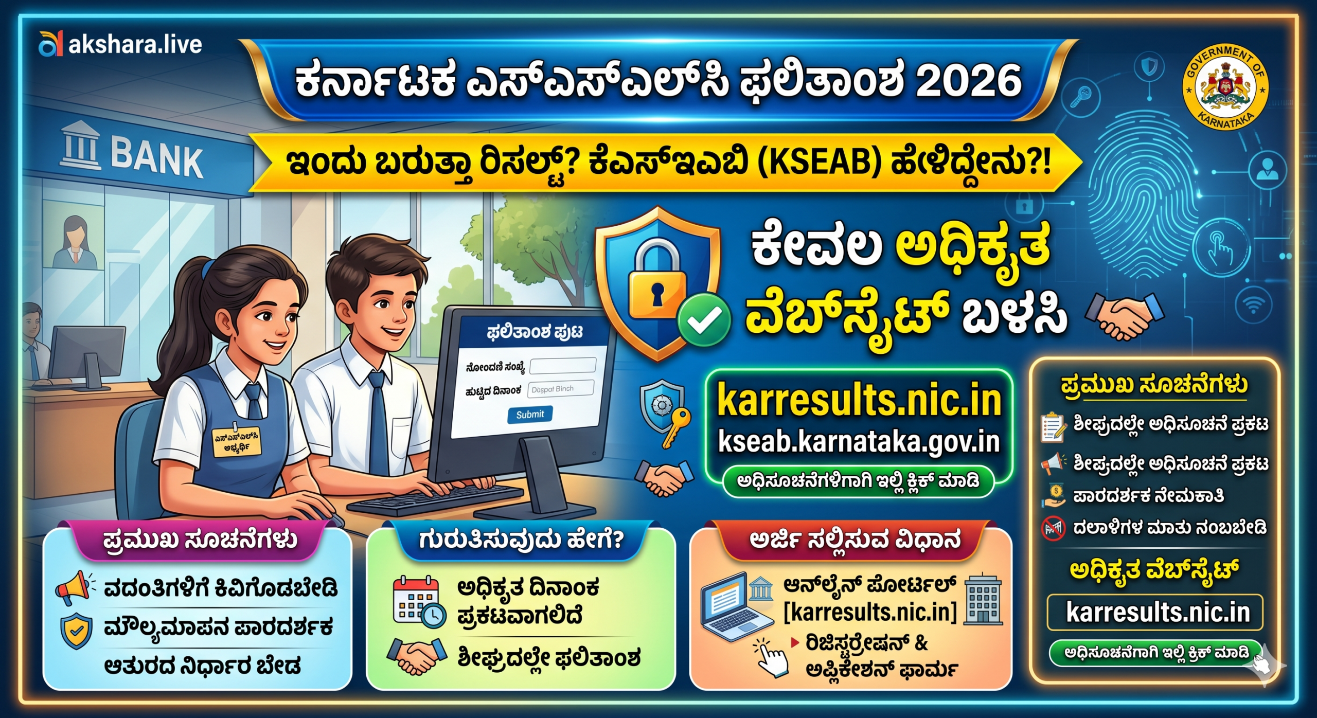 ಕರ್ನಾಟಕ ಶಾಲಾ ಪರೀಕ್ಷೆ ಮತ್ತು ಮೌಲ್ಯನಿರ್ಣಯ ಮಂಡಳಿ (KSEAB) ನಡೆಸಿದ 2026ನೇ ಸಾಲಿನ ಎಸ್ಎಸ್ಎಲ್ಸಿ (SSLC) ಪರೀಕ್ಷೆಯ ಫಲಿತಾಂಶಕ್ಕಾಗಿ ರಾಜ್ಯದ ಲಕ್ಷಾಂತರ ವಿದ್ಯಾರ್ಥಿಗಳು ಮತ್ತು ಪೋಷಕರು ಕಾತರದಿಂದ ಕಾಯುತ್ತಿದ್ದಾರೆ. ಮಾರ್ಚ್ ಮತ್ತು ಏಪ್ರಿಲ್ ತಿಂಗಳಿನಲ್ಲಿ ನಡೆದ ಈ ಪರೀಕ್ಷೆಯ ಮೌಲ್ಯಮಾಪನ ಪ್ರಕ್ರಿಯೆಯು ಈಗ ಅಂತಿಮ ಹಂತಕ್ಕೆ ತಲುಪಿದ್ದು, ಫಲಿತಾಂಶ ಪ್ರಕಟಣೆಯ ಕುರಿತು ಸಾಮಾಜಿಕ ಜಾಲತಾಣಗಳಲ್ಲಿ ಹರಿದಾಡುತ್ತಿರುವ ವದಂತಿಗಳಿಗೆ ಮಂಡಳಿಯು ಸ್ಪಷ್ಟನೆ ನೀಡಿದೆ. ಫಲಿತಾಂಶದ ನಿಖರ ದಿನಾಂಕ, ಅಧಿಕೃತ ವೆಬ್ಸೈಟ್ಗಳು, ಅಂಕಗಳನ್ನು ಪರಿಶೀಲಿಸುವ ವಿಧಾನ ಮತ್ತು ಫಲಿತಾಂಶದ ನಂತರದ ಪ್ರಕ್ರಿಯೆಗಳ ಬಗ್ಗೆ ಸಮಗ್ರ ಮಾಹಿತಿ ಇಲ್ಲಿದೆ.