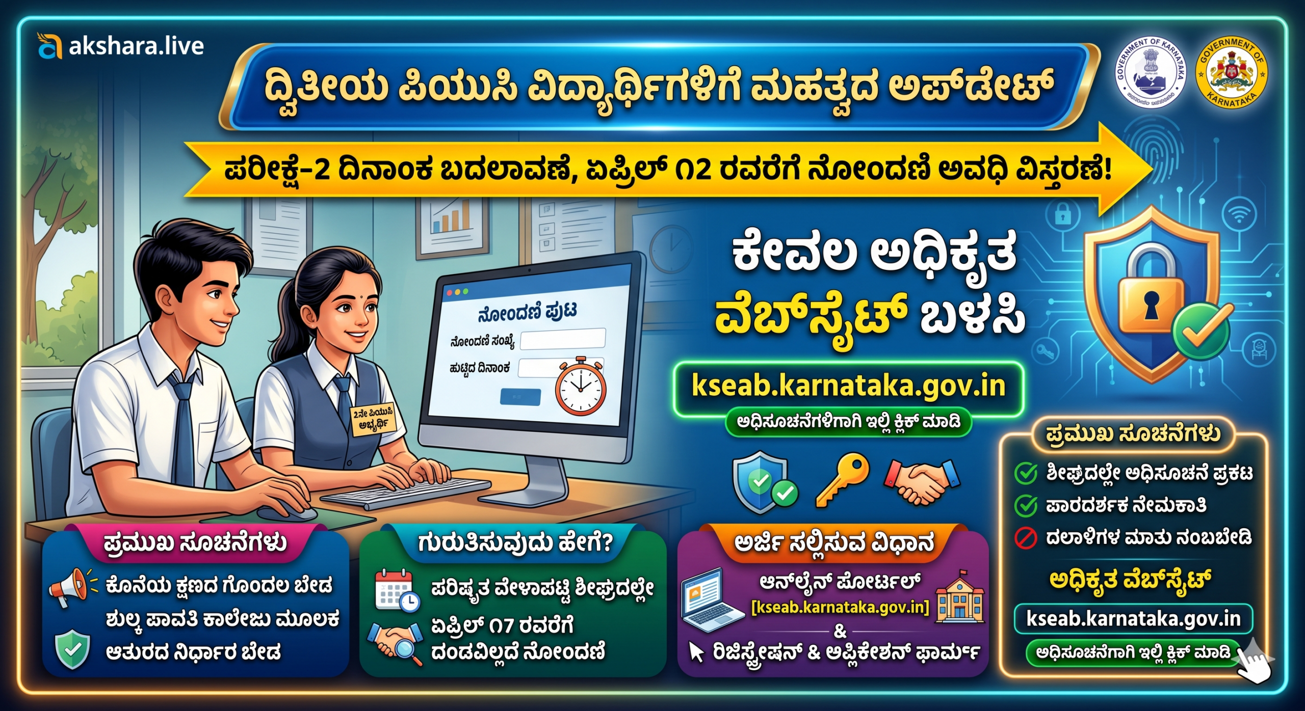 ಗಡುವು: ದಂಡವಿಲ್ಲದೆ ಅರ್ಜಿ ಸಲ್ಲಿಸಲು ಏಪ್ರಿಲ್ 17, 2026 ಕೊನೆಯ ದಿನವಾಗಿದೆ. ದಯವಿಟ್ಟು ಇಂದೇ ನಿಮ್ಮ ಕಾಲೇಜಿನ ಕಚೇರಿಯನ್ನು ಸಂಪರ್ಕಿಸಿ.