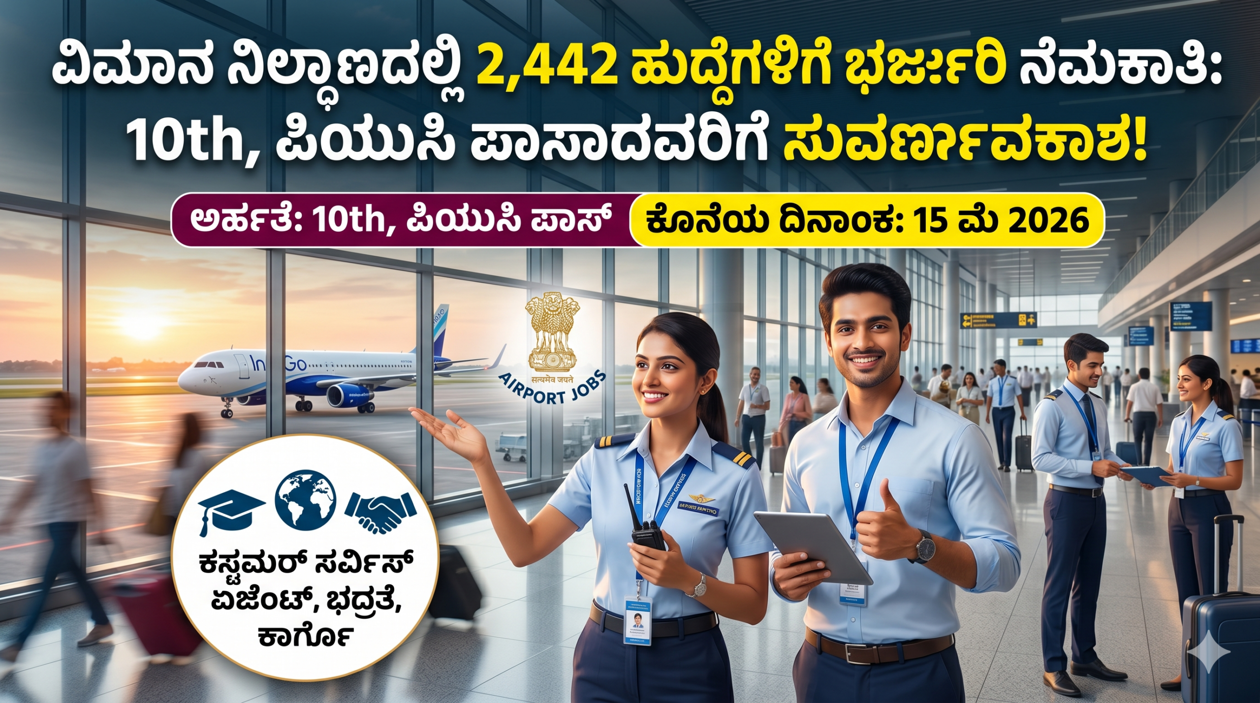 ವಿಮಾನಯಾನ ಕ್ಷೇತ್ರದಲ್ಲಿ ವೃತ್ತಿಜೀವನವನ್ನು ಆರಂಭಿಸಲು ಬಯಸುವ ಅಭ್ಯರ್ಥಿಗಳಿಗೆ ಇದು ಒಂದು ಸುವರ್ಣಾವಕಾಶ. ದೇಶದ ವಿವಿಧ ವಿಮಾನ ನಿಲ್ದಾಣಗಳಲ್ಲಿ ಖಾಲಿ ಇರುವ ಬೃಹತ್ ಸಂಖ್ಯೆಯ ಹುದ್ದೆಗಳ ಭರ್ತಿಗಾಗಿ ಅಧಿಕೃತ ನೇಮಕಾತಿ ಅಧಿಸೂಚನೆಯನ್ನು ಹೊರಡಿಸಲಾಗಿದೆ. ವಿಶೇಷವಾಗಿ ಕನಿಷ್ಠ ಶೈಕ್ಷಣಿಕ ಅರ್ಹತೆ ಹೊಂದಿರುವ ಯುವಕ-ಯುವತಿಯರಿಗೆ ವಿಮಾನ ನಿಲ್ದಾಣದಂತಹ ಅತ್ಯಾಧುನಿಕ ಪರಿಸರದಲ್ಲಿ ಕೆಲಸ ಮಾಡಲು ಈ ನೇಮಕಾತಿ ವೇದಿಕೆ ಕಲ್ಪಿಸಿದೆ. ಈ ಹುದ್ದೆಗಳು ಕೇವಲ ಕೆಲಸವಲ್ಲದೆ, ವೃತ್ತಿಜೀವನದಲ್ಲಿ ಉತ್ತಮ ಬೆಳವಣಿಗೆಯನ್ನು ಹೊಂದಲು ಪೂರಕವಾಗಿವೆ.