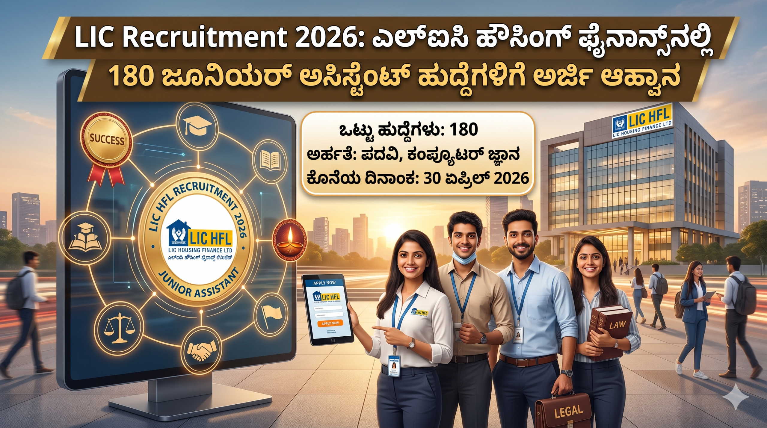 ಭಾರತೀಯ ಜೀವ ವಿಮಾ ನಿಗಮದ (LIC) ಅಂಗಸಂಸ್ಥೆಯಾದ ಎಲ್ಐಸಿ ಹೌಸಿಂಗ್ ಫೈನಾನ್ಸ್ ಲಿಮಿಟೆಡ್ (LIC HFL), ದೇಶದಾದ್ಯಂತ ಇರುವ ತನ್ನ ವಿವಿಧ ಶಾಖೆಗಳಲ್ಲಿ ಖಾಲಿ ಇರುವ 180 ಜೂನಿಯರ್ ಅಸಿಸ್ಟೆಂಟ್ (Junior Assistant) ಹುದ್ದೆಗಳ ಭರ್ತಿಗಾಗಿ ಅಧಿಕೃತ ನೇಮಕಾತಿ ಅಧಿಸೂಚನೆಯನ್ನು ಹೊರಡಿಸಿದೆ. ಬ್ಯಾಂಕಿಂಗ್ ಮತ್ತು ಹಣಕಾಸು ವಲಯದಲ್ಲಿ ಸ್ಥಿರವಾದ ಮತ್ತು ಗೌರವಯುತವಾದ ವೃತ್ತಿಜೀವನವನ್ನು ನಿರ್ಮಿಸಿಕೊಳ್ಳಲು ಬಯಸುವ ಪದವೀಧರರಿಗೆ ಇದೊಂದು ಅತ್ಯುತ್ತಮ ಅವಕಾಶವಾಗಿದೆ. ಈ ನೇಮಕಾತಿ ಪ್ರಕ್ರಿಯೆಯು ಸಂಪೂರ್ಣವಾಗಿ ಆನ್ಲೈನ್ ಮೂಲಕ ನಡೆಯಲಿದ್ದು, ಅರ್ಹ ಅಭ್ಯರ್ಥಿಗಳನ್ನು ಪಾರದರ್ಶಕ ಪರೀಕ್ಷಾ ವಿಧಾನದ ಮೂಲಕ ಆಯ್ಕೆ ಮಾಡಲಾಗುತ್ತದೆ. ಎಲ್ಐಸಿ ಎಚ್ಎಫ್ಎಲ್ ತನ್ನ ಗ್ರಾಹಕ ಸೇವೆ ಮತ್ತು ವಸತಿ ಸಾಲ ವಿತರಣಾ ಪ್ರಕ್ರಿಯೆಯನ್ನು ಇನ್ನಷ್ಟು ಚುರುಕುಗೊಳಿಸಲು ಈ ಬೃಹತ್ ನೇಮಕಾತಿಯನ್ನು ಹಮ್ಮಿಕೊಂಡಿದೆ. ಈ ಹುದ್ದೆಗಳಿಗೆ ಸಂಬಂಧಿಸಿದ ಅರ್ಹತೆಗಳು, ಪರೀಕ್ಷಾ ವಿಧಾನ ಮತ್ತು ಇತರ ಪ್ರಮುಖ ವಿವರಗಳು ಇಲ್ಲಿವೆ.