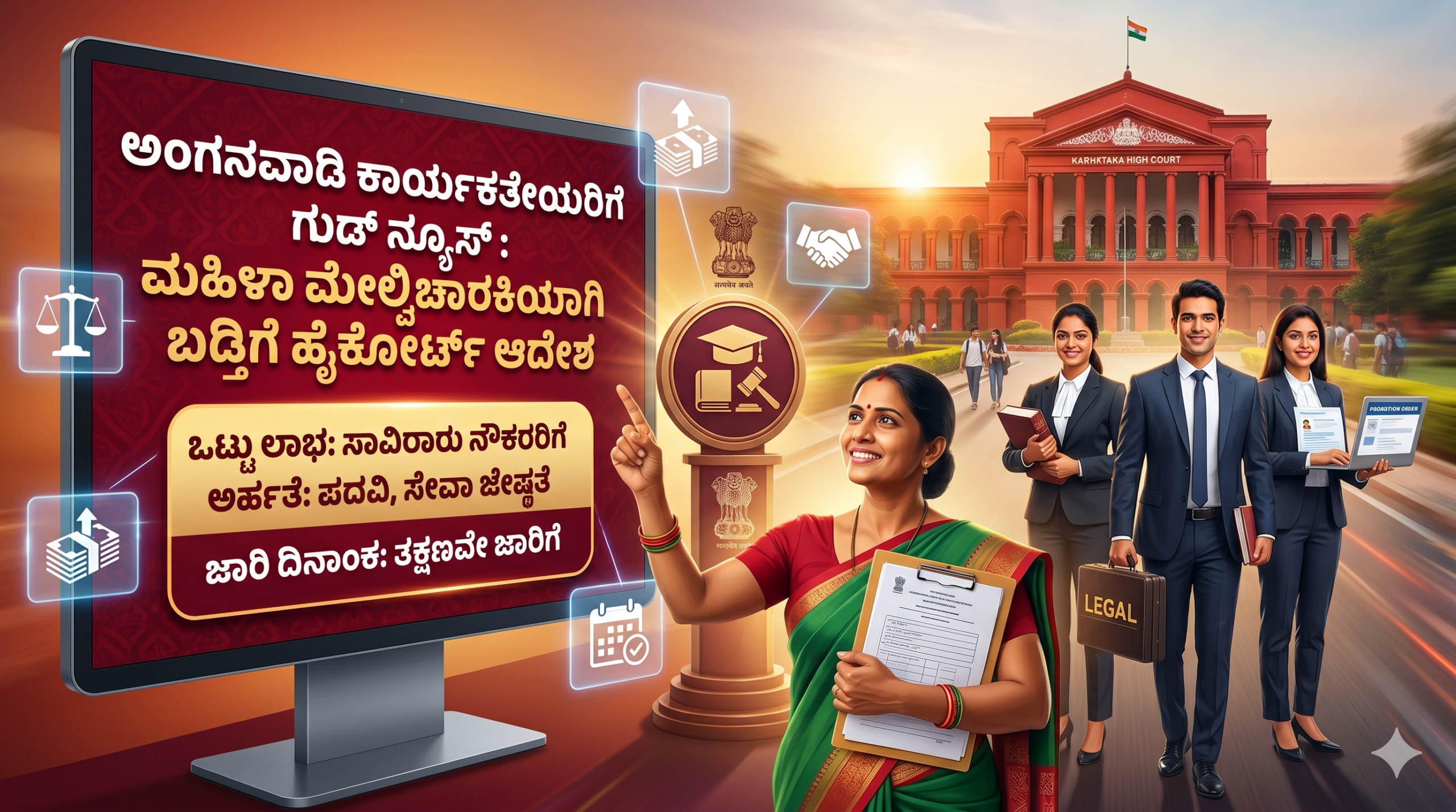 ಕರ್ನಾಟಕ ರಾಜ್ಯದ ಅಂಗನವಾಡಿ ಕಾರ್ಯಕರ್ತೆಯರ ದಶಕಗಳ ಕಾಲದ ಹೋರಾಟಕ್ಕೆ ಕೊನೆಗೂ ದೊಡ್ಡ ಜಯ ಸಿಕ್ಕಿದೆ. ರಾಜ್ಯದ ಅಂಗನವಾಡಿ ಕಾರ್ಯಕರ್ತೆಯರನ್ನು ಮಹಿಳಾ ಮತ್ತು ಮಕ್ಕಳ ಅಭಿವೃದ್ಧಿ ಇಲಾಖೆಯಲ್ಲಿ ‘ಮಹಿಳಾ ಮೇಲ್ವಿಚಾರಕಿ’ (Female Supervisors) ಹುದ್ದೆಗಳಿಗೆ ಬಡ್ತಿ ನೀಡುವ ಕುರಿತು ಮಾನ್ಯ ಉಚ್ಚ ನ್ಯಾಯಾಲಯವು ಐತಿಹಾಸಿಕ ತೀರ್ಪನ್ನು ನೀಡಿದೆ. ಈ ಆದೇಶದಿಂದಾಗಿ ರಾಜ್ಯಾದ್ಯಂತ ಸೇವೆಯಲ್ಲಿರುವ ಸಾವಿರಾರು ಅನುಭವಿ ಅಂಗನವಾಡಿ ಕಾರ್ಯಕರ್ತೆಯರಿಗೆ ವೃತ್ತಿಜೀವನದಲ್ಲಿ ಮುಂಬಡ್ತಿ ಪಡೆಯುವ ಹಾದಿ ಸುಗಮವಾಗಿದೆ. ತಳಮಟ್ಟದಲ್ಲಿ ಸಮಾಜದ ಸೇವೆ ಮಾಡುತ್ತಿರುವ ಮಹಿಳೆಯರಿಗೆ ಗೌರವಯುತ ಸ್ಥಾನಮಾನ ಮತ್ತು ಆರ್ಥಿಕ ಭದ್ರತೆ ಒದಗಿಸುವ ನಿಟ್ಟಿನಲ್ಲಿ ಈ ತೀರ್ಪು ಅತ್ಯಂತ ಮಹತ್ವದ್ದಾಗಿದೆ. ಈ ಬಡ್ತಿ ಪ್ರಕ್ರಿಯೆ, ಹೈಕೋರ್ಟ್ ನೀಡಿದ ನಿರ್ದೇಶನಗಳು ಮತ್ತು ಇದರಿಂದ ಆಗುವ ಲಾಭಗಳ ಕುರಿತಾದ ಸಂಪೂರ್ಣ ಮಾಹಿತಿ ಇಲ್ಲಿದೆ.