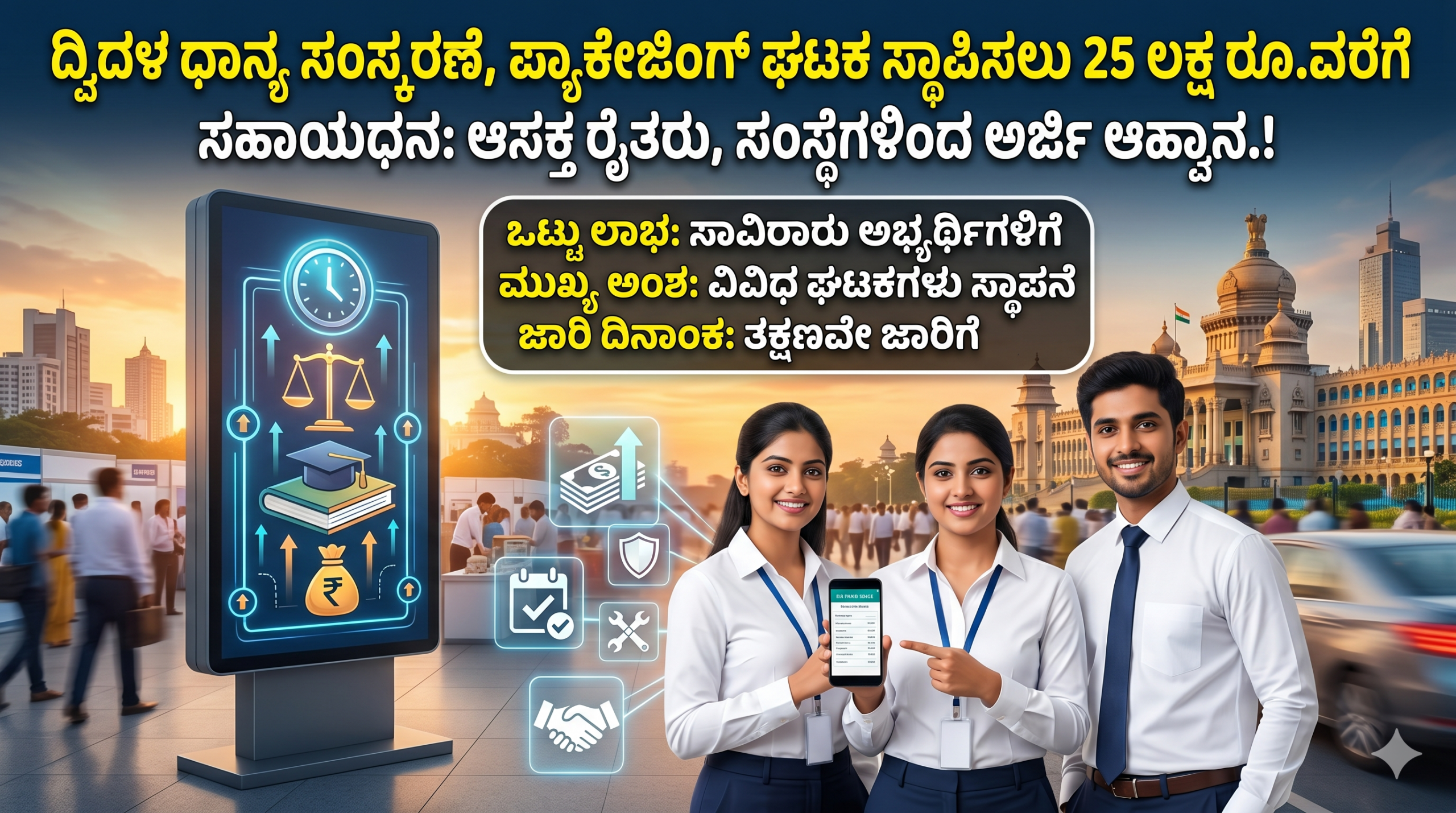 ಕರ್ನಾಟಕ ಸರ್ಕಾರವು ಕೃಷಿ ವಲಯದಲ್ಲಿ ಮೌಲ್ಯವರ್ಧನೆಗೆ ಹೆಚ್ಚಿನ ಆದ್ಯತೆ ನೀಡುತ್ತಿದ್ದು, ದ್ವಿದಳ ಧಾನ್ಯಗಳನ್ನು ಬೆಳೆಯುವ ರೈತರು ಮತ್ತು ಕೃಷಿ ಉದ್ಯಮಿಗಳನ್ನು ಪ್ರೋತ್ಸಾಹಿಸಲು ‘ದ್ವಿದಳ ಧಾನ್ಯ ಸಂಸ್ಕರಣೆ ಮತ್ತು ಪ್ಯಾಕೇಜಿಂಗ್ ಘಟಕ’ ಸ್ಥಾಪನೆಗೆ ಬೃಹತ್ ಮೊತ್ತದ ಸಹಾಯಧನವನ್ನು ಘೋಷಿಸಿದೆ. ರಾಜ್ಯದಲ್ಲಿ ತೊಗರಿ, ಹೆಸರು, ಉದ್ದು, ಕಡಲೆಯಂತಹ ಧಾನ್ಯಗಳ ಉತ್ಪಾದನೆ ಹೆಚ್ಚಿದ್ದರೂ, ಸಂಸ್ಕರಣಾ ಘಟಕಗಳ ಕೊರತೆಯಿಂದಾಗಿ ರೈತರು ಮಧ್ಯವರ್ತಿಗಳ ಮೇಲೆ ಅವಲಂಬಿತರಾಗುತ್ತಿದ್ದಾರೆ. ಇದನ್ನು ಮನಗಂಡು, ರೈತರು ತಾವೇ ಸ್ವತಃ ಸಂಸ್ಕರಣಾ ಘಟಕಗಳನ್ನು ಸ್ಥಾಪಿಸಿ, ಪ್ಯಾಕೇಜಿಂಗ್ ಮಾಡುವ ಮೂಲಕ ಮಾರುಕಟ್ಟೆಗೆ ನೇರವಾಗಿ ಉತ್ಪನ್ನಗಳನ್ನು ಬಿಡುಗಡೆ ಮಾಡಲು ಸರ್ಕಾರವು 25 ಲಕ್ಷ ರೂಪಾಯಿಗಳವರೆಗೆ ಆರ್ಥಿಕ ನೆರವು ನೀಡುತ್ತಿದೆ. ಈ ಯೋಜನೆಯ ಸಂಪೂರ್ಣ ವಿವರ, ಅರ್ಹತೆಗಳು ಮತ್ತು ಅರ್ಜಿ ಸಲ್ಲಿಸುವ ವಿಧಾನವನ್ನು ಇಲ್ಲಿ ಸವಿಸ್ತಾರವಾಗಿ ನೀಡಲಾಗಿದೆ.
