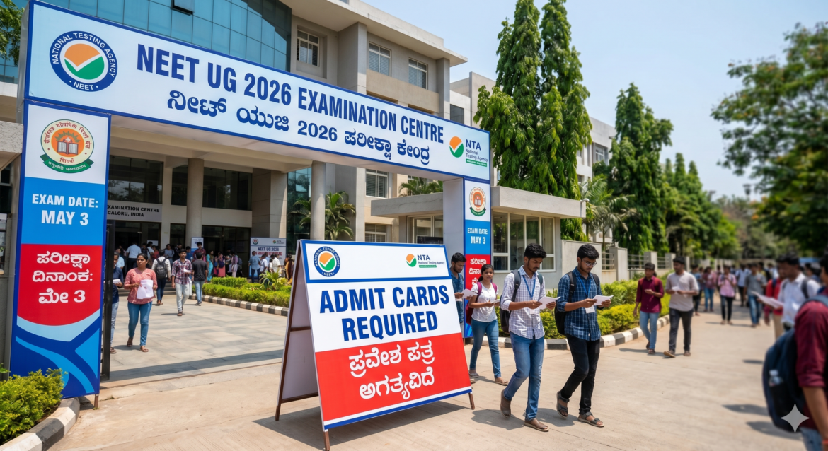 ನ್ಯಾಷನಲ್ ಟೆಸ್ಟಿಂಗ್ ಏಜೆನ್ಸಿ (NTA) ವೈದ್ಯಕೀಯ ಶಿಕ್ಷಣ ಆಕಾಂಕ್ಷಿಗಳಿಗಾಗಿ ಬಹುನಿರೀಕ್ಷಿತ NEET UG 2026 ಪರೀಕ್ಷೆಯ ಪ್ರವೇಶ ಪತ್ರವನ್ನು (Admit Card) ಇಂದು ಅಧಿಕೃತವಾಗಿ ಬಿಡುಗಡೆ ಮಾಡಿದೆ. ದೇಶದಾದ್ಯಂತ ಲಕ್ಷಾಂತರ ವಿದ್ಯಾರ್ಥಿಗಳು ಎಂಬಿಬಿಎಸ್ (MBBS), ಬಿಡಿಎಸ್ (BDS), ಆಯುಷ್ ಮತ್ತು ಇತರ ವೈದ್ಯಕೀಯ ಕೋರ್ಸ್ಗಳ ಪ್ರವೇಶಕ್ಕಾಗಿ ಈ ಪರೀಕ್ಷೆಯನ್ನು ಎದುರಿಸಲಿದ್ದಾರೆ. ಮೇ 3 ರಂದು ಪರೀಕ್ಷೆ ನಡೆಯಲಿದ್ದು, ಈ ಹಂತದಲ್ಲಿ ಅಭ್ಯರ್ಥಿಗಳು ಪರೀಕ್ಷಾ ಕೇಂದ್ರದ ವಿವರಗಳು, ನಿಯಮಗಳು ಮತ್ತು ಸಿದ್ಧತೆಯ ಬಗ್ಗೆ ಸಂಪೂರ್ಣ ಮಾಹಿತಿ ಹೊಂದಿರುವುದು ಅತ್ಯಗತ್ಯ.