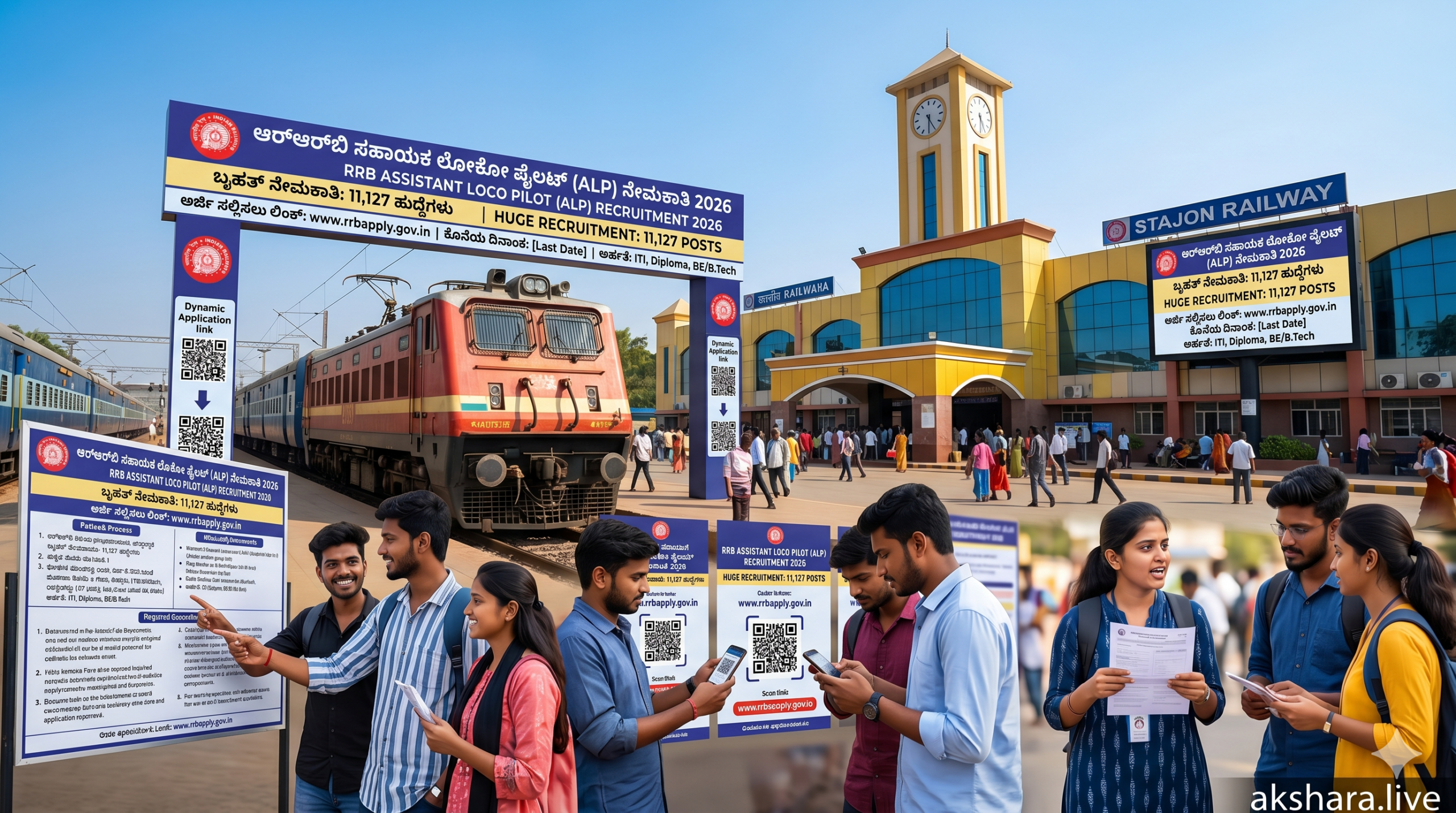 ಆರ್ಆರ್ಬಿ ಎಎಲ್ಪಿ 2026ರ ನೇಮಕಾತಿಯ ಅರ್ಜಿ ಪ್ರಕ್ರಿಯೆಯು ಈಗಾಗಲೇ ಆರಂಭವಾಗಿದ್ದು, ಅರ್ಹ ಅಭ್ಯರ್ಥಿಗಳು ನಿಗದಿತ ಅಂತಿಮ ದಿನಾಂಕದೊಳಗೆ ಅರ್ಜಿಯನ್ನು ಸಲ್ಲಿಸಬೇಕು. ಸಾಮಾನ್ಯವಾಗಿ ಅಧಿಸೂಚನೆ ಪ್ರಕಟವಾದ ದಿನದಿಂದ 30 ದಿನಗಳ ಕಾಲಾವಕಾಶವಿರುತ್ತದೆ. ಹೆಚ್ಚಿನ ಮಾಹಿತಿಗಾಗಿ ಅಭ್ಯರ್ಥಿಗಳು ಆರ್ಆರ್ಬಿ ಬೆಂಗಳೂರು ಅಥವಾ ಆರ್ಆರ್ಬಿ ಹುಬ್ಬಳ್ಳಿ ವೆಬ್ಸೈಟ್ಗಳನ್ನು ನಿಯಮಿತವಾಗಿ ಗಮನಿಸುತ್ತಿರಬೇಕು. ಯಾವುದೇ ಮಧ್ಯವರ್ತಿಗಳ ಮಾತನ್ನು ನಂಬದೆ ಅಧಿಕೃತ ಮಾಹಿತಿಯ ಆಧಾರದ ಮೇಲೆ ತಯಾರಿ ನಡೆಸಿ. ಅಕ್ಷರ ಲೈವ್ (Akshara Live) ಮೂಲಕ ನಾವು ನಿರಂತರವಾಗಿ ಪರೀಕ್ಷಾ ತಯಾರಿ ಮತ್ತು ಹೊಸ ಅಪ್ಡೇಟ್ಗಳನ್ನು ನಿಮಗೆ ತಲುಪಿಸುತ್ತಿರುತ್ತೇವೆ.