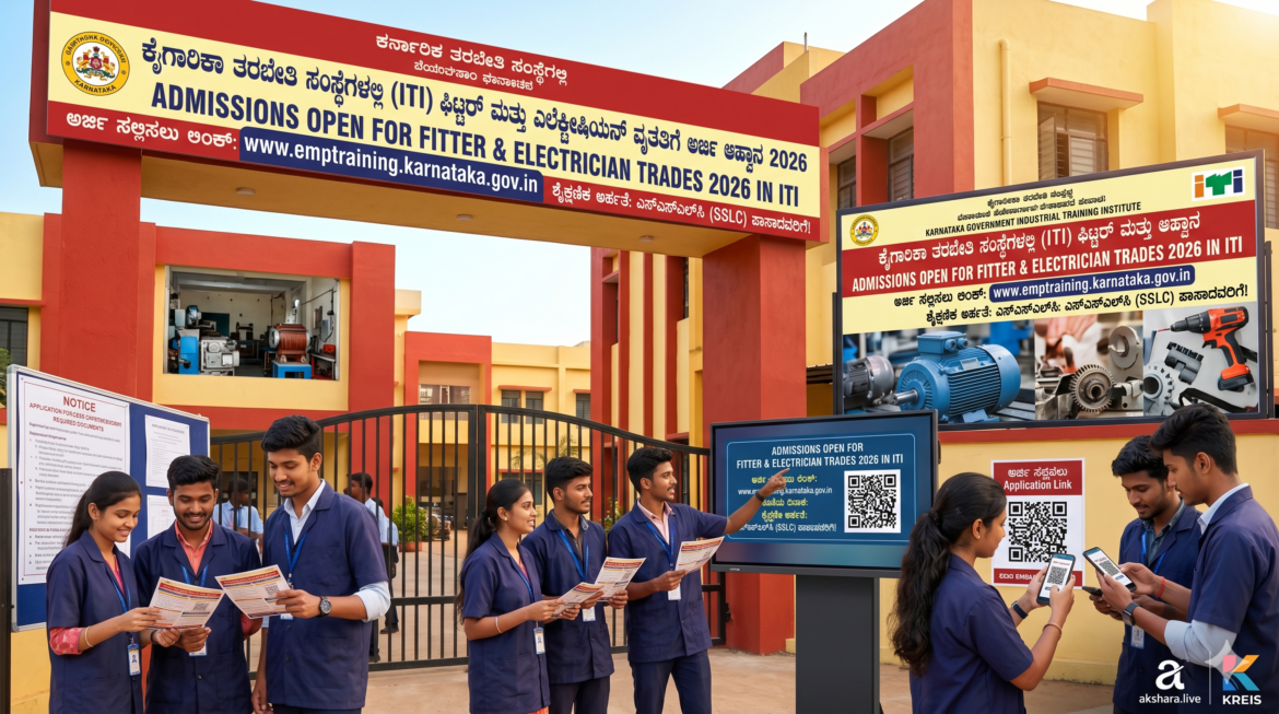ಯುವಜನತೆ ಸ್ವಾವಲಂಬಿ ಜೀವನ ನಡೆಸಲು ತಾಂತ್ರಿಕ ಕೌಶಲ್ಯಗಳು ಅತ್ಯಗತ್ಯವಾಗಿವೆ. ಈ ನಿಟ್ಟಿನಲ್ಲಿ ಕರ್ನಾಟಕ ಸರ್ಕಾರದ ಕೈಗಾರಿಕಾ ತರಬೇತಿ ಮತ್ತು ಉದ್ಯೋಗ ಇಲಾಖೆಯ ಅಡಿಯಲ್ಲಿ ಬರುವ ವಿವಿಧ ಸರ್ಕಾರಿ ಮತ್ತು ಅನುದಾನಿತ ಕೈಗಾರಿಕಾ ತರಬೇತಿ ಸಂಸ್ಥೆಗಳಲ್ಲಿ (ITI) 2026-27ನೇ ಸಾಲಿಗಾಗಿ ಫಿಟ್ಟರ್ ಮತ್ತು ಎಲೆಕ್ಟ್ರೀಷಿಯನ್ ವೃತ್ತಿಗಳ ಪ್ರವೇಶಕ್ಕೆ ಅರ್ಜಿ ಆಹ್ವಾನಿಸಲಾಗಿದೆ. ಕೈಗಾರಿಕಾ ಕ್ಷೇತ್ರದಲ್ಲಿ ಅತಿ ಹೆಚ್ಚು ಬೇಡಿಕೆ ಇರುವ ಈ ಎರಡು ವೃತ್ತಿಗಳು ಅಭ್ಯರ್ಥಿಗಳಿಗೆ ಕೇವಲ ಶಿಕ್ಷಣವನ್ನಷ್ಟೇ ನೀಡದೆ, ಉದ್ಯೋಗದ ಭದ್ರತೆಯನ್ನು ಒದಗಿಸುತ್ತವೆ. ಎಸ್ಎಸ್ಎಲ್ಸಿ ನಂತರ ತಕ್ಷಣವೇ ವೃತ್ತಿ ಬದುಕನ್ನು ಆರಂಭಿಸಲು ಬಯಸುವ ವಿದ್ಯಾರ್ಥಿಗಳಿಗೆ ಇದು ಅತ್ಯುತ್ತಮ ಹಾದಿಯಾಗಿದೆ. ತಾಂತ್ರಿಕ ಜ್ಞಾನದೊಂದಿಗೆ ಪ್ರಾಯೋಗಿಕ ತರಬೇತಿಯನ್ನು ಪಡೆಯುವ ಮೂಲಕ ಅಭ್ಯರ್ಥಿಗಳು ದೇಶ-ವಿದೇಶಗಳಲ್ಲಿ ಉದ್ಯೋಗಾವಕಾಶಗಳನ್ನು ಪಡೆಯಲು ಸಾಧ್ಯವಿದೆ.
