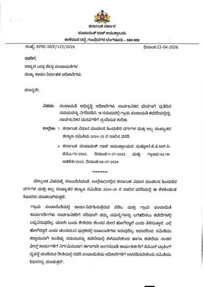 ಮಹಾತ್ಮ ಗಾಂಧೀಜಿಯವರ ಗ್ರಾಮ ಸ್ವರಾಜ್ಯದ ಕನಸನ್ನು ನನಸಾಗಿಸಲು ಗ್ರಾಮ ಪಂಚಾಯಿತಿಗಳು ಬಲಿಷ್ಠವಾಗಬೇಕು. ಅದಕ್ಕೆ ಪಂಚಾಯಿತಿ ಅಧಿಕಾರಿಗಳ ಪ್ರಾಮಾಣಿಕ ಸೇವೆ ಅತಿ ಮುಖ್ಯ. ಡಿಜಿಟಲ್ ತಂತ್ರಜ್ಞಾನದ ಮೂಲಕ ಪಂಚಾಯಿತಿ ಆಡಳಿತವನ್ನು ಹದ್ದುಬಸ್ತಿನಲ್ಲಿಡುವುದು ಕೇವಲ ಶಿಸ್ತಿನ ಕ್ರಮವಲ್ಲ, ಅದು ಪ್ರಜಾಪ್ರಭುತ್ವದ ಮೌಲ್ಯಗಳನ್ನು ಎತ್ತಿಹಿಡಿಯುವ ಪ್ರಯತ್ನವಾಗಿದೆ. ಅಧಿಕಾರಿಗಳು ಜನರ ಸೇವಕರಾಗಿ ಕೆಲಸ ಮಾಡುವ ವಾತಾವರಣ ನಿರ್ಮಾಣವಾದಾಗ ಮಾತ್ರ ಗ್ರಾಮೀಣ ಭಾರತದ ನಿಜವಾದ ಅಭಿವೃದ್ಧಿ ಸಾಧ್ಯ. ಸರ್ಕಾರದ ಈ ಐತಿಹಾಸಿಕ ನಿರ್ಧಾರವು ಕರ್ನಾಟಕದ ಪಂಚಾಯತ್ ರಾಜ್ ವ್ಯವಸ್ಥೆಯಲ್ಲಿ ಒಂದು ಮೈಲಿಗಲ್ಲಾಗಲಿದೆ. ಜನರು ಇನ್ಮುಂದೆ ತಮ್ಮ ಹಕ್ಕುಗಳಿಗಾಗಿ ಅಧಿಕಾರಿಗಳ ಹಿಂದೆ ಬೀಳುವ ಅವಶ್ಯಕತೆಯಿಲ್ಲ, ಬದಲಾಗಿ ವ್ಯವಸ್ಥೆಯೇ ಜನರಿಗೆ ಸ್ಪಂದಿಸಲಿದೆ.