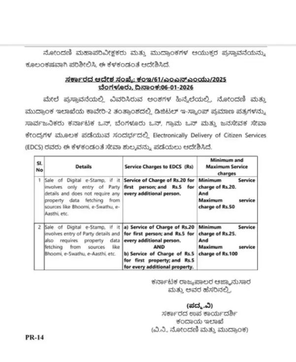 ಕರ್ನಾಟಕ ಸರ್ಕಾರವು ಡಿಜಿಟಲ್ ಇ-ಸ್ಟಾಂಪ್ ಸೇವೆಗೆ ಸಂಬಂಧಿಸಿದಂತೆ ಹೊರಡಿಸಿರುವ ಹೊಸ ದರ ಪಟ್ಟಿ ಮತ್ತು ಅದರ ಜಾರಿಯ ಕುರಿತಾದ ಸಮಗ್ರ ಮಾಹಿತಿ ಇಲ್ಲಿದೆ: